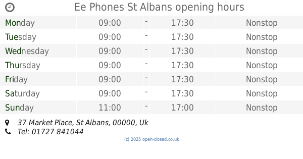 It is also possible to : Edit these OPENING HOURS of Store Ee Phones In St Albans, 37 Market Place,
